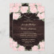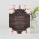 Una rústica invitación a una boda llena de flores con rosas de color y el aliento de un bebé sobre un fondo de madera de granero decorado con luces de cuerda. Elementos coincidentes disponibles.