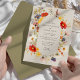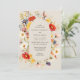 La rústica invitación a la boda de una flor silvestre con un elegante diseño floral. El moderno marco ovalado de las vibrantes flores botánicas silvestres y las florecientes flores detalladas en ricos y cálidos tonos neutros tierra. Un magnífico diseño con colores de verano y otoño de color rojo naranja amarillo rosa y crema sobre un fondo neutro, que te ayudará a organizar una multitud de temas, como bodas en boho, bodas en el jardín, bodas de verano, bodas de otoño, bodas de campo rústicas o de cosecha. Para coordinar invitaciones, papelería, juegos y decoración del día del evento, por favor visite mi colección de Bodas Rustic Wildflower o envíeme un mensaje para añadir cualquier artículo adicional que necesite.