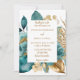 Invitación Elegante boda floral Verde azulado y dorado