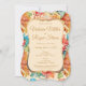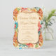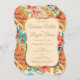 Celebra tu día de bodas con esta elegante invitación de boda inspirada en el estilo victoriano. Un patrón colorido y dinámico sin costuras florales con elegantes peonías rojas, amarillo turquesa, botánico naranja y verde. El marco dorado y blanco roto del soporte enmarca los detalles del boda en el tipo de letra del guión dorado, completando este hermoso diseño vintage.