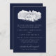 Invitación Elegante Boda formal azul de la marina de dibujo d