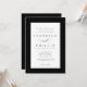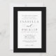 Con una tipografía clásica y elegante, esta invitación a la boda formal con un marco de color personalizable marca el tono para un boda atemporal. Perfecto para una aventura de corbata negra. El color predeterminado es negro, pero se puede cambiar haciendo clic en "personalizar". También hay piezas de coordenadas disponibles en la suite boda.