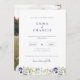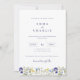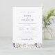 Elegante Boho Wildflowers invitación a la boda de guiones azules con foto de la pareja en la parte trasera de la tarjeta al personalizar en pocos pasos!