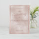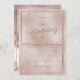 Un elegante y tradicional rosa de escritura formal de oro con pinceles de oro subió de moda y invitaciones de boda fotográficas con gradiente rosa y rosa.