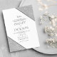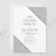 Esta invitación de boda con tema geométrico presenta un marco geométrico blanco y plateado con brillo que rodea los detalles de su boda. Dé a sus invitados una excelente primera impresión de la boda que se avecina, esta tarjeta será un complemento fantástico para sus eventos de boda.
