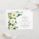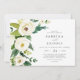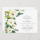Esta elegante invitación blanca floral a la boda es perfecta para un boda clásico. El moderno diseño vintage presenta un bonito y romántico rosa de marfil y acuarela crema y flores de peonía con hojas de color verde oscuro, vegetación y productos botánicos.
