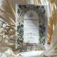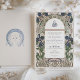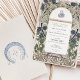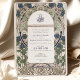 Este lujoso establecimiento de tipo bodas de estilo Art Nouveau presenta un diseño floral deliciosamente intrincado, en ricos tonos azules, verdes y lavanda sobre un fondo blanco inmaculado. Las obras de arte detalladas enmarcan los detalles del boda e incluyen una elegante caligrafía árabe, añadiendo un toque único y cultural. La invitación pone de manifiesto una armoniosa mezcla de elementos clásicos de Art Nouveau con un toque moderno, perfecto para las parejas que aprecian la belleza atemporal y la elegancia cultural. El monograma de correspondencias en la parte posterior aumenta aún más el atractivo sofisticado. Ideal para bodas de gama alta, este conjunto de invitados impresiona a sus huéspedes y marca la pauta para un evento inolvidable.