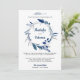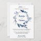 Invite a sus invitados con esta elegante invitación de boda con una hermosa corona azul sobre un fondo blanco. Simplemente agregue los detalles de su evento en esta plantilla fácil de usar para convertirla en una invitación única. Girar la tarjeta para mostrar un patrón de puntos azules y blancos en la parte posterior de la tarjeta.