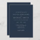 Invitación nupcial azul marina con tipografía de moda minimalista.