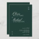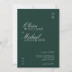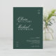 Invitación de boda verde esmeralda con tipografía de moda minimalista.
