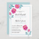 Invitación Elegante Boda Moderna con Borde Floral Rosa Teal
