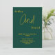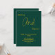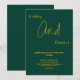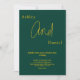 Esta elegante invitación de boda verde y dorada es perfecta para una boda moderna. El diseño simple presenta una elegante caligrafía dorada sobre un fondo verde.
