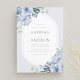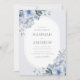 Elegante y polvorienta invitación a una boda floral azul con flores acuáticas y un moderno marco oval. Una bella plantilla de invitación a la boda para un boda con temática primaveral o veraniega.