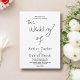 Esta elegante invitación a la boda en blanco y negro es perfecta para un boda moderno. el diseño es sencillo, con una elegante caligrafía negra sobre un fondo blanco.