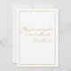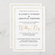 Simple y elegante invitación a bodas en blanco y negro con las palabras "Día de la boda" en un falso guión de oro. En la parte trasera de la tarjeta se muestra una escritura en falso oro sobre el amor, tomada del libro de La canción de las canciones de Salomón que dice: "Muchas aguas no pueden sofocar el amor ni los ríos pueden ahogarlo". ¡Un sentimiento hermoso para el día más importante de tu vida!