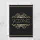 Una elegante invitación a la boda de color negro y oro. El frente está decorado con un texto de color dorado: BODA y acentos de color dorado sobre un fondo negro. El texto inverso incluye todos los detalles de la invitación en un fondo de lino suave coloreado, con guarnecido negro. Para personalizar, simplemente inserte su texto en nuestra plantilla sencilla, reemplazando el texto de ejemplo.