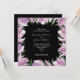 Invite a su boda con un elegante borde de flores de magnolia moradas y blancas y hojas sobre un fondo negro. **TIP: EL TAMAÑO CUADRADO REQUIERE UN POSTAJE EXTRA. COINCIDIENDO elementos de nuestra colección.
