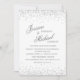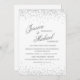 Invitación a la boda en blanco con purpurina plateado y un elegante tipo de letra caligrafía / guión.