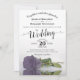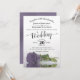 Esta magnífica invitación a la boda presenta un moderno diseño floral con un único rosa de color púrpura, lila o lavanda de tallo largo sobre un estanque con olas y ondas. El diseño es sencillo, elegante, romántico y sofisticado, con caligrafía de escritura de encaje y contenido de personalizable completo.