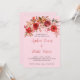 Esta elegante invitación a la boda tiene un suave fondo rosa, lo que ofrece una base romántica y acogedora para su exquisito diseño floral otoñal. En la parte superior, una gran variedad de flores de matrimonio caídas, entre ellas rosales rojas vibrantes y flores rosadas delgadas, está bien arreglada, entretejida con un follaje verde, marrón y rojo exuberante. Esta combinación aporta un toque de elegancia y encanto de temporada a la invitación, por lo que es ideal para parejas que buscan una mezcla de elegancia y belleza rústica. El texto de la invitación se presenta en un sencillo tipo de letra negra, lo que garantiza claridad y un atractivo eterno. Este enfoque minimalista permite que el intrincado diseño floral ocupe un lugar central, creando una composición armoniosa y visualmente cautivadora. Los nombres de las parejas se resaltan con un llamativo tipo de letra roja, haciendo juego con los rosas y añadiendo un toque personalizado que realza el diseño general. Ideal para bodas en otoño o invierno, esta invitación capta la esencia de estas estaciones con sus vibrantes pero sutiles acentos florales. Las rosas rojas y las flores que las acompañan, junto con el variado follaje verde, marrón y rojo, evocan la calidez y la riqueza del otoño y la elegancia acogedora del invierno, lo que lo convierte en una elección versátil para los bodas en cualquier temporada. Además, el motivo floral es perfecto para un boda rústico o de temática rural, añadiendo un elemento de belleza natural y encanto a la celebración. Para los bodas con un esquema de colores centrado en rojo, rosa, marrón, blanco o verde, esta invitación es una excelente elección. La combinación armoniosa de estos colores garantiza que la invitación se complemente perfectamente con la decoración y la temática del boda. Ya sea que esté planeando una celebración rústica al aire libre, un acogedor romance o un evento interior clásico, esta invitación marcará el tono para una ocasión hermosa y memorable. El suave fondo rosa de esta invitación, combinado con su delicado diseño floral y su cuidada combinación de colores, lo convierten en una opción atemporal para las parejas que buscan celebrar su amor con estilo. Las flores otoñales, junto con el follaje variado, crean un impresionante impacto visual. Perfecto para otoño, invierno, rústico, campestre, floral o bodas elegantes, esta invitación dejará una impresión duradera a sus invitados, sentando las bases para una celebración verdaderamente inolvidable.