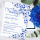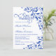 © Socialite Designs. Una elegante invitación a la boda azul real con magníficos remolinos decorativos en esquina listos para ser personalizados para su evento especial. El estilo de fuente, el texto y el tipo de papel se pueden cambiar. ¿Necesita AYUDA con la personalización o productos adicionales con este diseño? Por favor no dude en ponerse en contacto con los diseños socialitas.
