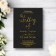 Esta elegante invitación a celebrar bodas en negro y oro es perfecta para un boda moderno. el diseño es sencillo y elegante, con una caligrafía dorada sobre un fondo negro.