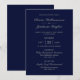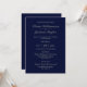 Un elegante azul marino con invitación a bodas de texto gris, adecuado para parejas que intercambian votos en un lugar y asisten a su recepción en otro lugar.