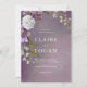 Esta elegante invitación a la boda presenta flores reales sobre un polvoriento fondo morado. El reverso presenta un fondo polvoriento morado con motivos florales reales. Personalízalo para tus necesidades. Puedes encontrar productos coincidentes en mi tienda.