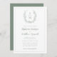 Estas invitaciones de boda presentan un diseño botánico elegante con monograma y tipografía de escritura moderna en un color verde sabio. Personaliza tu texto. También se dispone de material de papelería de correspondencia.