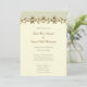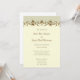 Hermoso y elegante diseño de invitación a la boda con un detalle de adorno de desplazamiento de color dorado con un color verde claro encima y un color marfil debajo. Este diseño también se presenta en muchos otros productos de papel y también se envía para satisfacer todas las necesidades de su boda.
