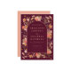 Esta elegante invitación a la boda de terracota con arcos de flores silvestres de color burdeos captura la esencia de una celebración de otoño con su impresionante diseño de moda boho. Las flores silvestres de acuarela pintadas a mano enmarcan delicadamente un arco, creando una armoniosa mezcla de tonos otoñales quemados naranja, número quemado, púrpura, amarillo, terracota, melocotón, borgoña, coral y verduras de tierra. La rica paleta de colores se encuentra en un fondo burdeos profundo, creando un ambiente cálido y acogedor perfecto para una boda en otoño. Los llamativos florales, en los que predominan los tonos naranjas, el número quemado, el naranja quemado, el coral, el púrpura, el rosa y el amarillo, le dan un toque de encanto a la naturaleza, mientras que el guión elegante y la tipografía moderna infunden sofisticación al diseño. Diseñada por la talentosa Catherine Sweetman, esta invitación encarna el espíritu de una celebración íntima y acogedora. El diseño de un arco único no sólo resalta la belleza de las flores, sino que también le da espacio a todos sus detalles bodas esenciales. La invitación viene con plantillas fáciles de personalizar que garantizan una planificación perfecta para sus huéspedes. Ya sea una boda en otoño en el campo o una celebración inspirada en el boho, esta invitación transmitirá tu historia de amor con arte y elegancia. El cálido entorno en burdeos y melocotón le da vida a las obras de arte, ofreciendo un ambiente atemporal y fresco para su día especial.