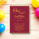 Esta elegante invitación al Borgoña y al oro cumpleaños es perfecta para un cumpleaños moderno. el diseño es sencillo y elegante, con una caligrafía dorada sobre un fondo burdeos.
