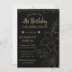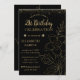Invitación Elegante Botánico Negro y Oro 21 cumpleaños