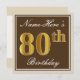 Invitación Elegante, Brown, Faux Gold 80 cumpleaños + nombre