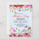 Elegante Moda de flores silvestres primavera Invitación de brunch del Día de la Madre. Hermosa celebración con madre con flores de rosa y rojo, mariposas y libélulas. Personalice esta plantilla con su información. Fondo de color azul en la parte delantera y rosa en la parte posterior. El color es el personalizable.