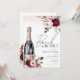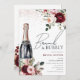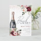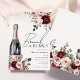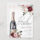 Invite a sus chicas a tomar el brunch y las burbujas con esta elegante invitación a la ducha de novias. El diseño cuenta con una botella de champán color agua decorada con románticos florales color burdeos, color rosa y crema, vegetación y un falso purpurina de oro rosa. La plantilla sencilla es fácil de personalizar con sus propios detalles de eventos.