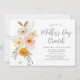 Elegantes invitaciones para el brunch del Día de la Madre con un ramo de flores acuáticas y vegetación en tonos rosas, naranja dorado/amarillo, crema, blanco y verde. Personaliza las invitaciones florales del brunch del Día de la Madre con tus detalles del evento.