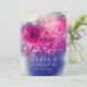obra de arte de acuarela de flores rosa y burgundy chic en hermoso jarrón azul y tipografía de hogar dulce hogar Invitación de Boda.