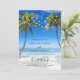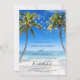 Elegante Beach String ilumina la invitación a la boda de escritura moderna - Nuestra invitación a la boda incluye una hermosa playa tropical con una playa de arena blanca y palmeras adornadas con brillantes luces de cuerda. La invitación perfecta para tu boda en la playa. La parte posterior de la invitación muestra tu foto favorita. La invitación también estará disponible sin foto. Invitación a la boda es parte de una colección. Diseñado por Beverly Arena-Bainbridge Boda Designer Magnolia & Thistle