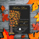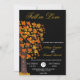 Esta elegante invitación a la boda de otoño es perfecta para un boda moderno de otoño. El diseño es sencillo y cuenta con árboles y hojas de otoño con una tipografía elegante en blanco y amarillo sobre un fondo negro.