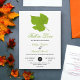 Esta elegante invitación a la boda de otoño es perfecta para un boda moderno de otoño. El diseño es sencillo, con hojas de otoño verdes y una tipografía elegante en negro y verde sobre un fondo blanco.