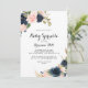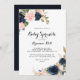 Esta elegante caligrafía floral de invierno invita a los bebés a rociarse, ideal para una moderna ducha de bebé. El diseño se compone de bonitos azules oscuros pintados a mano, azules, marinos, rosados, ondulados, flores doradas y follaje verde, repartidos en elegantes ramos.