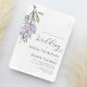 Anuncie su día especial con esta elegante invitación de espliego de bodas con acentos florales de lila acuarela y un guión elegante de caligrafía. El diseño de la tipografía de brochas añade un toque moderno al estilo clásico formal, mientras que las delicadas glicinias floridas del jardín aportan un ambiente sencillo y suave. Perfecto para bodas de primavera, verano o otoño, este diseño presenta un paisaje de vegetación botánica de un estilo elegante y sofisticado. Fijar el tono para una celebración eterna con esta encantadora invitación!