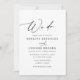 Invite a amigos y familiares a compartir la alegría de su boda con esta invitación moderna, con un guión elegante y un diseño minimalista en blanco y negro.