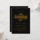 Esta elegante invitación a la boda en negro y oro es perfecta para un boda moderno. El diseño es sencillo y cuenta con una elegante caligrafía dorada sobre un fondo negro. La tarjeta de invitación incluye los detalles del boda en la parte posterior en lugar de pagar por una tarjeta separada.