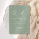 Invite a amigos y familiares a compartir la alegría de su boda con esta invitación moderna, con un guión elegante sobre un fondo verde sabio.