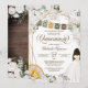 Invitación de quinceañera en elegantes rosas blancas, peonías e hidrangea con acentos dorados y banner de papel picado, gorra charro y vestido. Consulte la tienda para ver esta invitación con chicas de diferentes colores de cabello y tonos de piel y más variaciones.