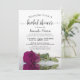 Esta hermosa invitación a la ducha de novia incluye una foto de un solo rosa morado, magenta o de color baya de cassis de tallo largo sobre un estanque de agua con olas y olas. El elegante título de caligrafía de guión da clase y estilo. Incluye información sobre la ducha y el registro de regalos. La forma perfecta de celebrar a la novia.