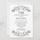 Los torbellinos y floridos negros decoran este elegante diseño de invitación a la celebración de los 75 años. Se puede modificar el esquema clásico de color blanco y negro. Personalice el elegante texto personalizado de su evento especial. Nota: el número del año de cumpleaños se puede modificar.