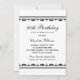 La invitación a la fiesta de cumpleaños elegante y de moda incluye un encabezado de guión con texto personalizado y detalles de borde damasco / rayado. Diseño cuadrado. Combinación clásica de colores en blanco y negro.